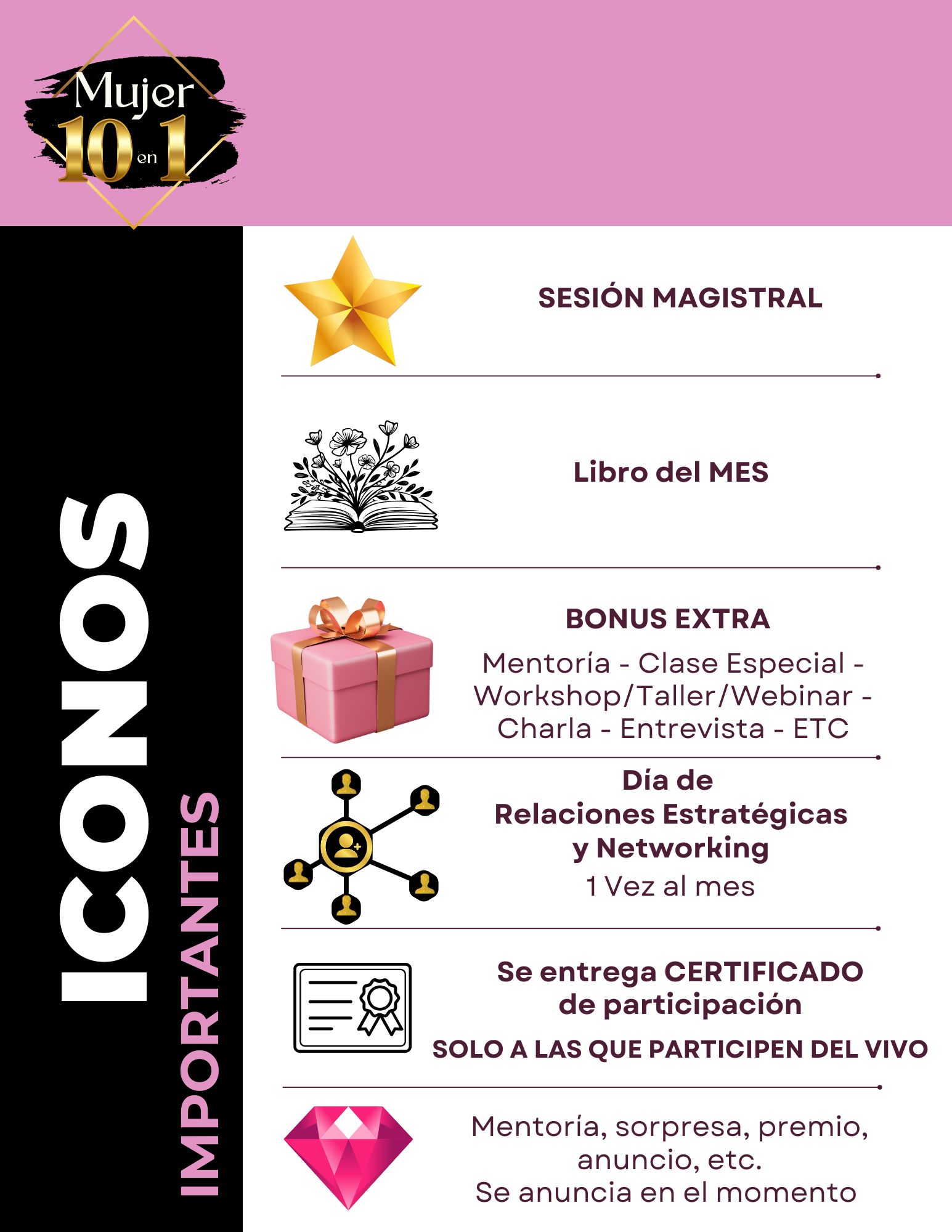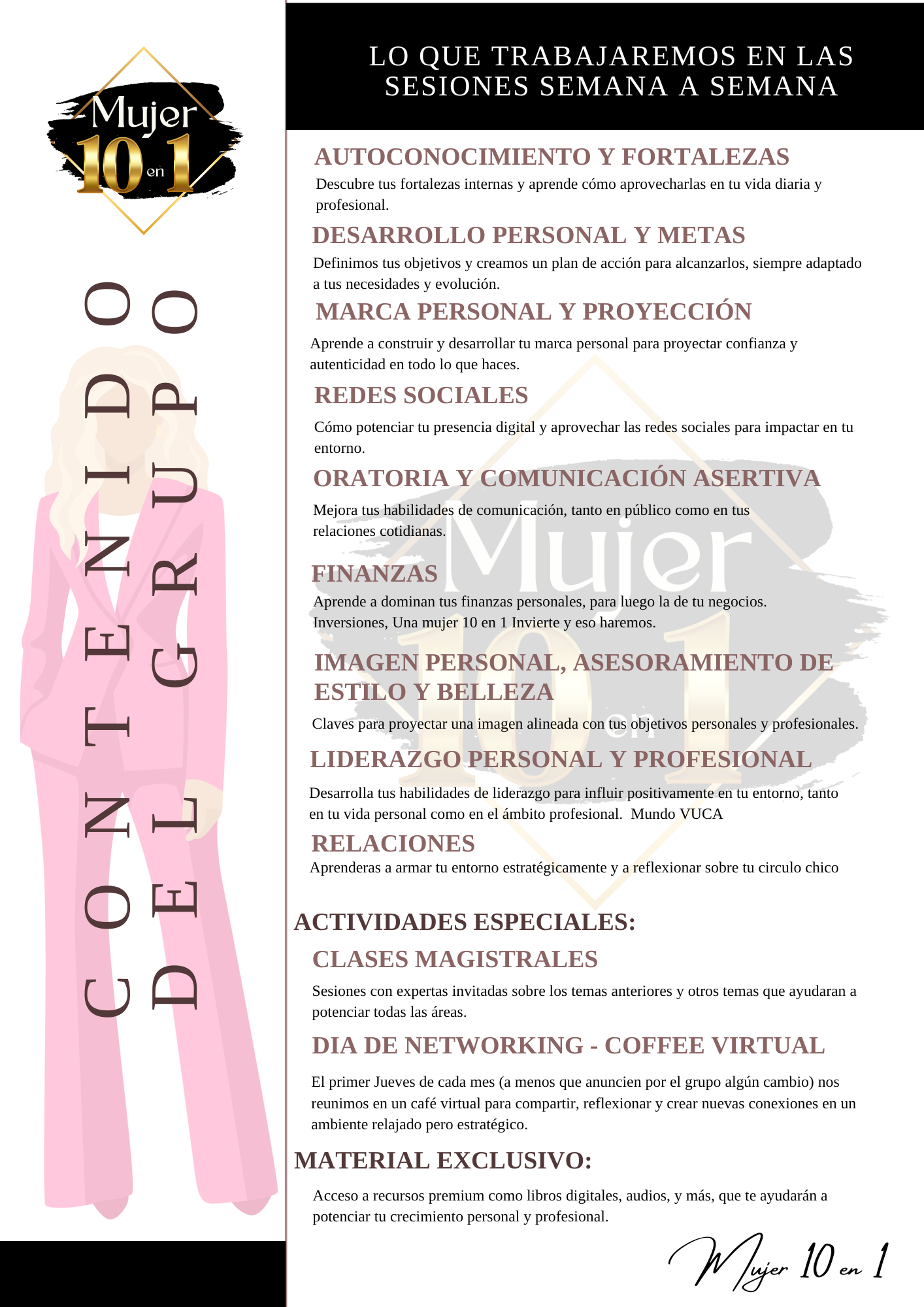 Onboarding Empieza Aquí: Todo lo que Necesitás Saber Para Comenzar... Portal Experience: https://youtu.be/oLODERkELz4 Mentoría 0 https://youtu.be/kOBzwT-uDeU Kit de Bienvenida Descargá los siguientes archivos: Mujer 10 en 1 Journal Sumate al Grupo VIP ¡El viaje hacia tu mejor versión comienza ahora!, ¡El futuro es tuyo!, Creé en vos misma y en el poder de las mentorías - Mujer 10 en 1 Whatsapp Por consultas o soporte contactarnos al WhatsApp